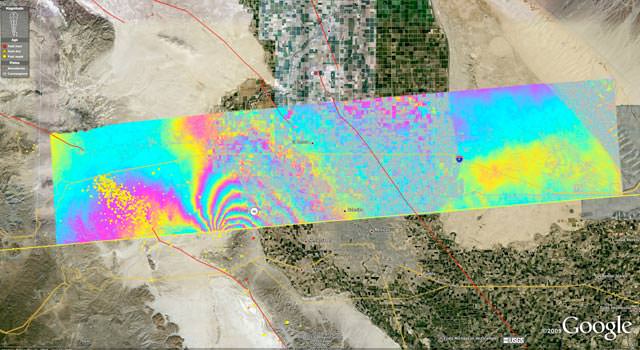 NASA has released the first-ever airborne radar images of the deformation in Earth's surface caused by a major earth quake -- the magnitude 7.2 temblor that rocked Mexico's state of Baja California and parts of the American Southwest on April 4, 2010. The data reveal that in the area studied, the quake moved the Calexico, Calif., region in a downward and southerly direction up to 80 centimeters (31 inches).