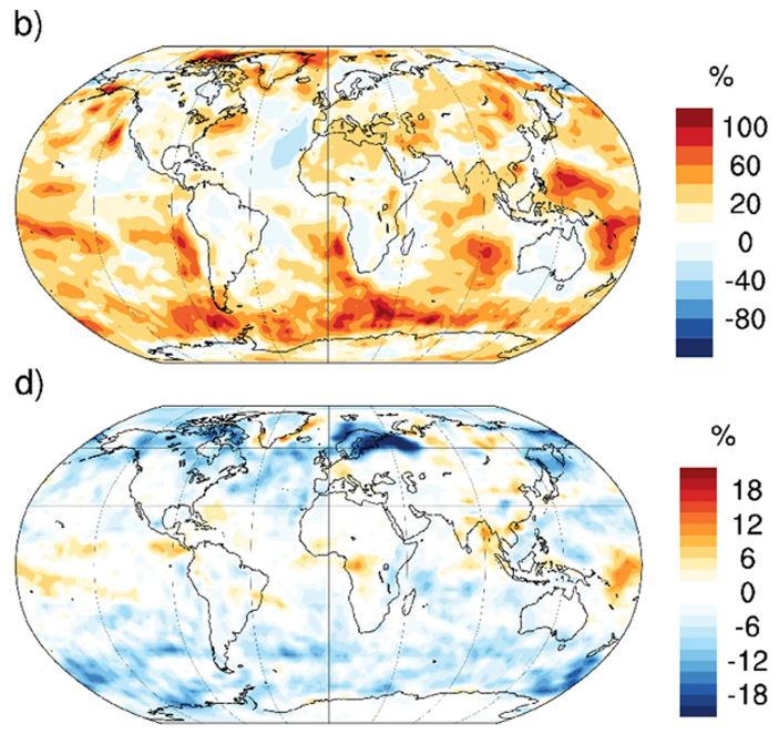 Global cooling would increase, but not to a dangerous extent. Over the Pacific and Southern oceans, CCN could increase by up to 100%, which sounds like a lot. "These changes, while climatically relevant, are comparable to the contrast between the pristine pre-industrial atmosphere and the polluted present-day atmosphere." They're saying that it would cool the atmosphere by about the same amount as we're heating it now.