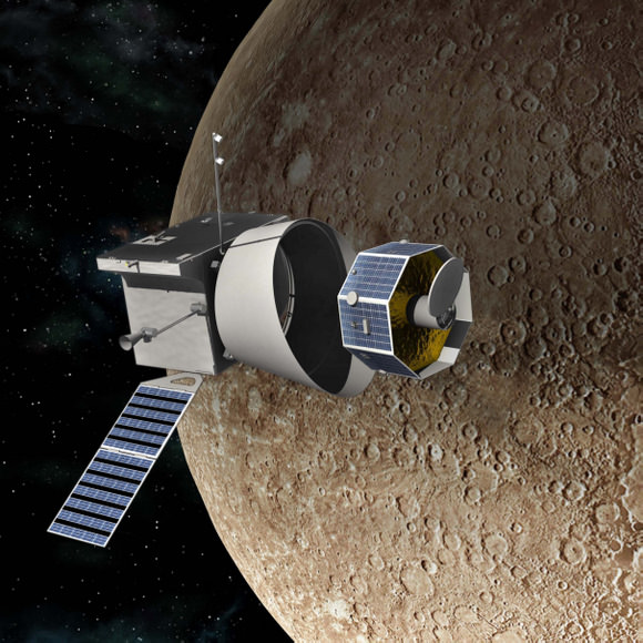 Bepi-Colombo, a joint mission of the ESA and JAXA, will perform two fly-bys of Venus on its way to Mercury. Image: ESA/JAXA[/caption]