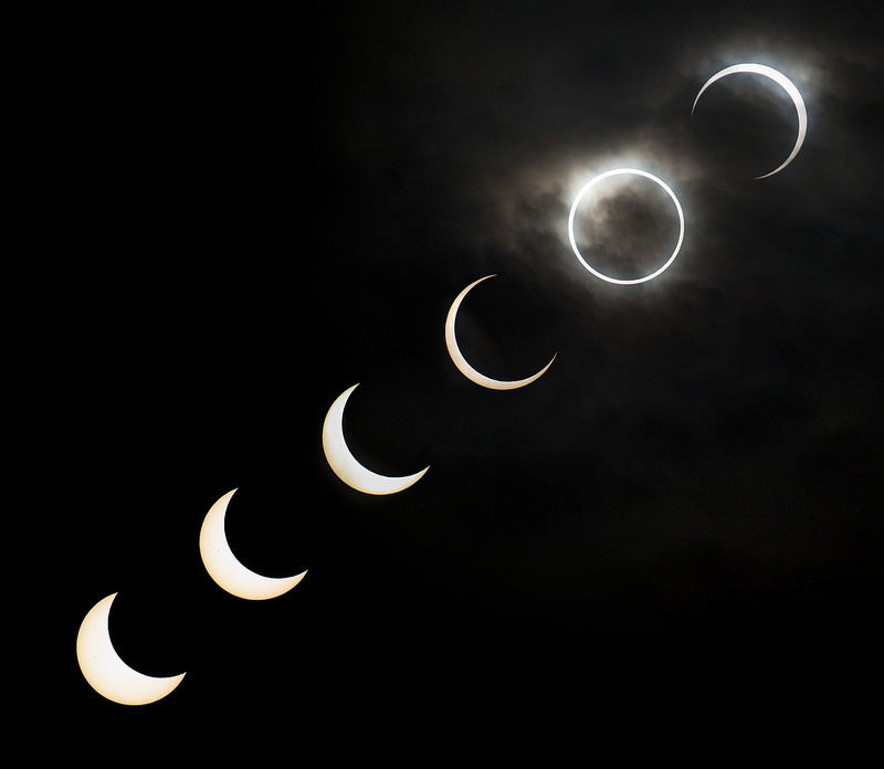 [caption id="attachment_95301" align="aligncenter" width="580" caption="May 20 2012 Solar Eclipse near Sunset Beach / Huntington Beach, CA - timelapse / composition of "phases" of the eclipse during the approximate 2 hour duration. Credit: jimnista on Flickr."]