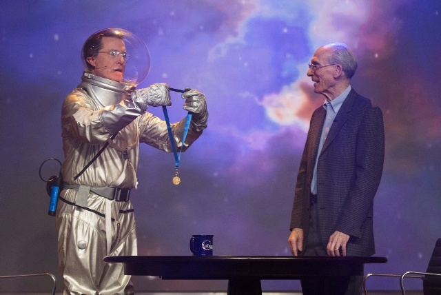 "I was on the Colbert Report to talk about what I think of as humankind's greatest—and certainly most extensive—journey of exploration, and I certainly didn't expect the host to hand me an award," said Stone. "That surprise on my face was real."