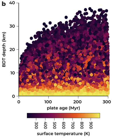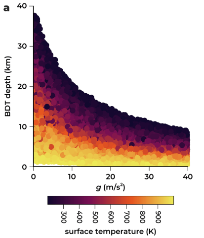 Prominent in the paper is the concept of BDT—brittle-ductile transition. The BDT is the zone in the lithosphere where dominantly brittle behaviour changes to dominantly ductile deformation. In this term ductile basically means pliable. The strength of a planet's lithosphere is heavily reliant on its thickness, so the deeper the BDT, the stronger the crust.