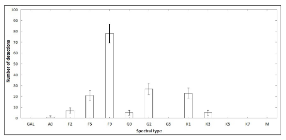 This graph shows the number of detected signals by Spectral Type of star. Image: Ermanno F. Borra and Eric Trottier [/caption]