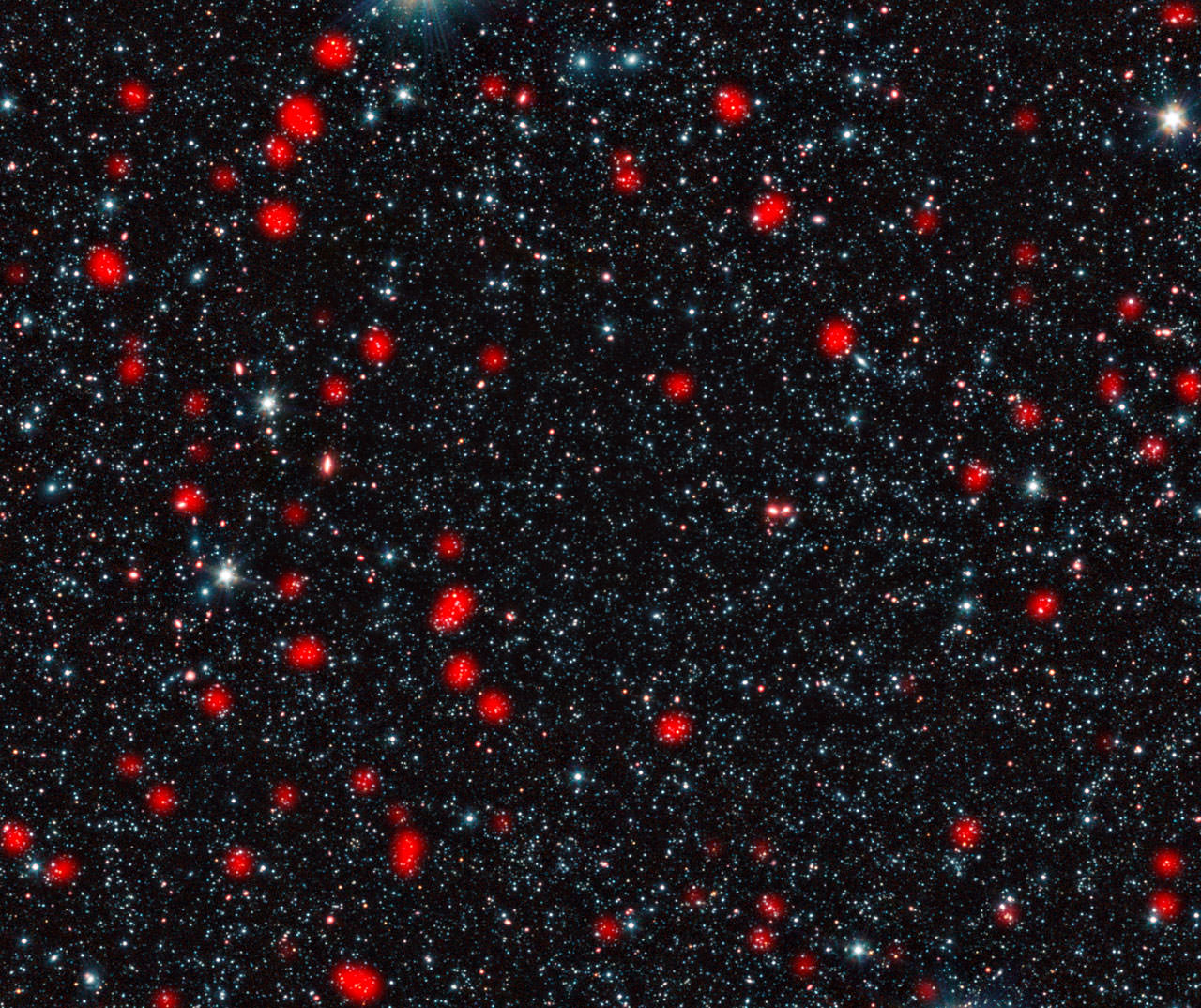 Located about 10 billion light years away, these submillimetre galaxies were once home to starburst events - a time of intense formation. By obtaining estimations of dark matter halos and combining that information with computer modeling, scientists are able to hypothesize how the halos expanding with time. Eventually these once active galaxies settled down to form giant ellipticals - the most massive type known.