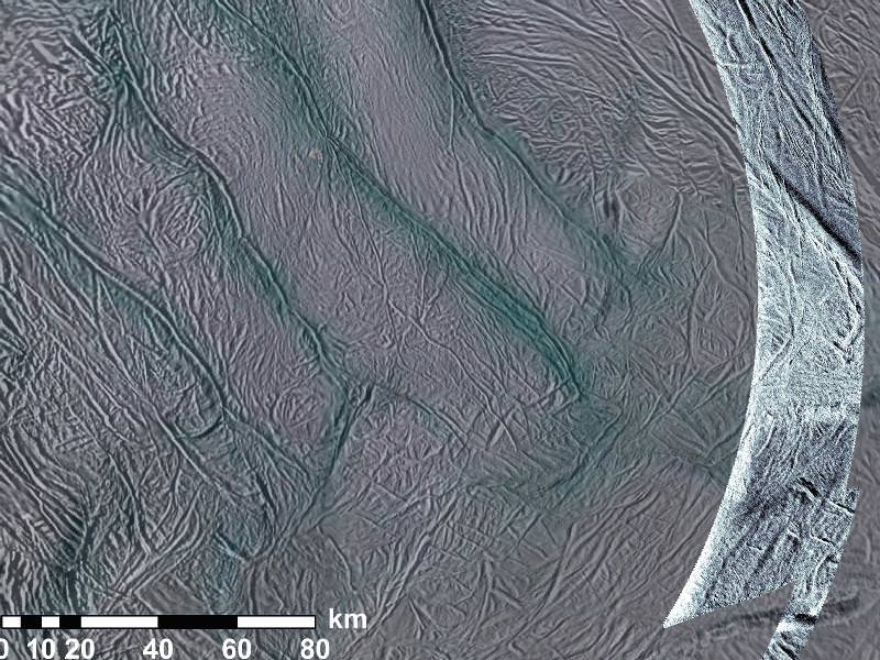The SAR images did not focus on the moon's now-famous "tiger stripe" fractures (called