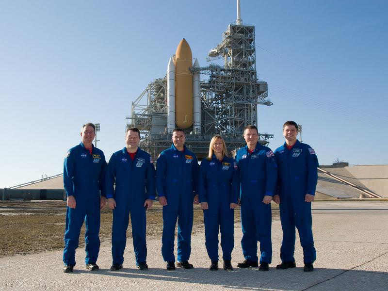 The six person crew comprises of commander George "Zambo" Zamka, pilot Terry Virts, and mission specialists Kathryn Hire, Stephen Robinson, Nicholas Patrick and Robert Behnken.