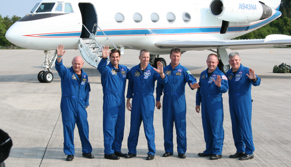 Commander Mark Kelly and STS-134 Crew Arrive at Kennedy for Endeavour's Final Flight