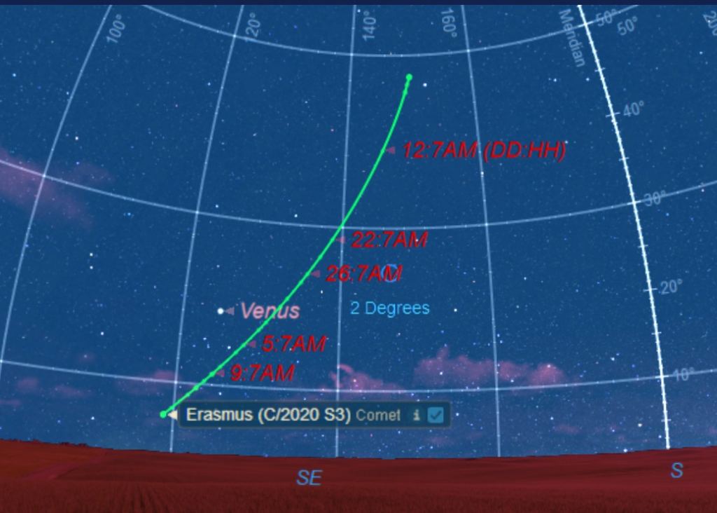As of writing this, Comet S3 Erasmus is overperforming slightly, shining at magnitude +9 "with a bullet." Here's a month-by-month breakdown of celestial dates with destiny for Comet C/2020 S3 Erasmus: