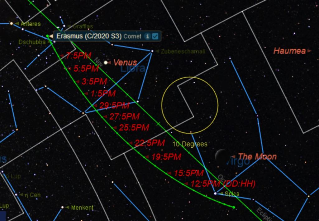 Ready for one more comet for 2020? Thus far, this year has been a memorable one for comet watchers, with a steady stream of binocular fuzzball comets, crowned by the amazing sight of naked eye comet C/2020 F3 NEOWISE this past summer. 2020 cometary alumni has also included comets F8 SWAN, P1 NEOWISE, and M3 ATLAS. Now, newly discovered Comet C/2020 S3 Erasmus takes center stage.