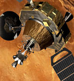 The ExoMars mission, to be launched in 2009, is the first of the major Flagship missions in the Aurora programme. It includes an orbiter and a descent module that will land a large (200 kg), high-mobility rover on the surface of Mars. After delivery of the lander/rover, the ExoMars orbiter will also operate as a data relay satellite between the Earth and the vehicle on the Martian surface.