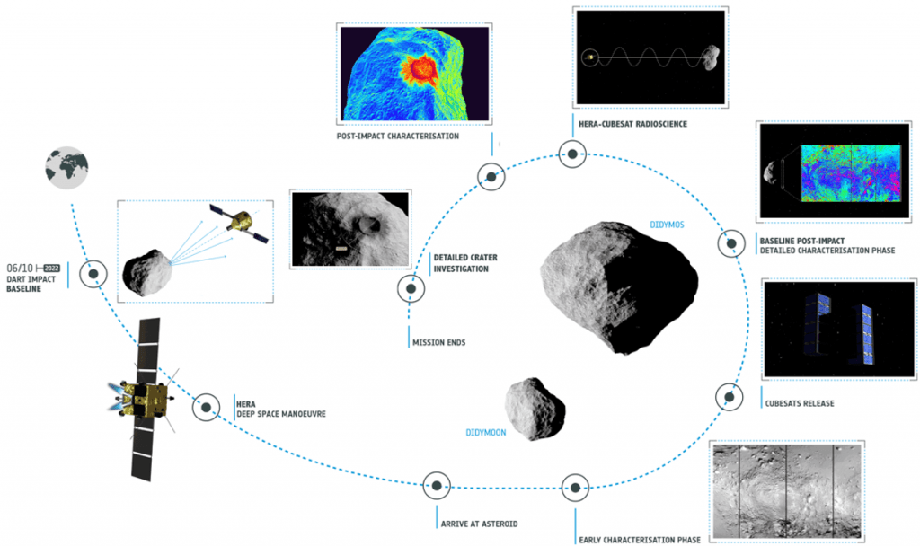 Hera will launch in 2024 atop the new Ariane-6 heavy lift rocket, possibly slated for its inaugural launch by the end of 2020.