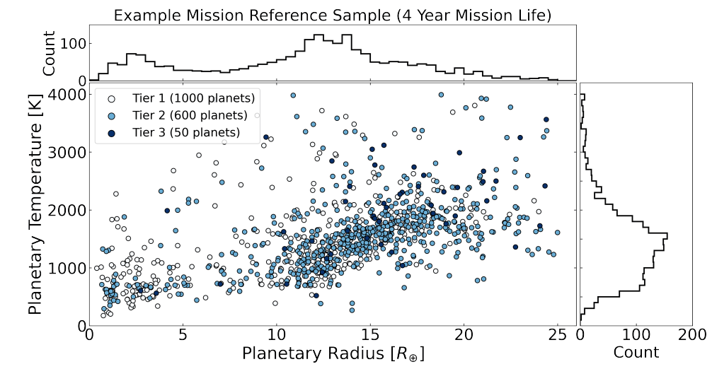 Ariel will work with three tiers of targets. Tier 1 will have about 1,000 targets. These initial 1,000 will create a large sample size containing basic characterization of the atmospheres (presence of clouds, colour-colour diagrams etc.) of the planets. Tier 2 will comprise about half of the targets from Tier 1. Tier 2 will be longer duration observations of each target that will give a more detailed view of each exoplanet's atmosphere. Lastly comes Tier 3. Tier 3 will study the best targets for atmospheric characterization multiple times in search of temporal variations in chemistry or cloud coverage. Depending on how everything goes, there could even be a Tier 4, which will refine things even further.