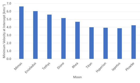 The team also calculated the minimum encounter velocities for each moon. These velocities allow the laser sails to encounter both moons and fly past them without collisions. Different moons have different masses and gravitational relationships with their planets, so each mission would have a different minimum velocity based on its destination.