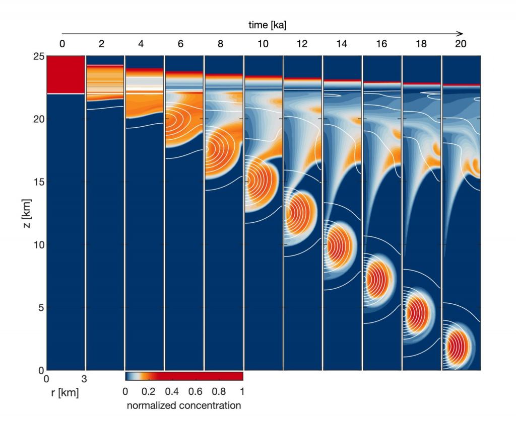 The researchers showed how oxygen is transported through the ice in their simulation. The oxygen-laden brine moves to the subsurface ocean in a porosity wave. A porosity wave transports the brine through the ice by momentarily widening the pores in the ice before quickly sealing up again. Over thousands of years, these porosity waves transport the oxygen-rich brine to the ocean.