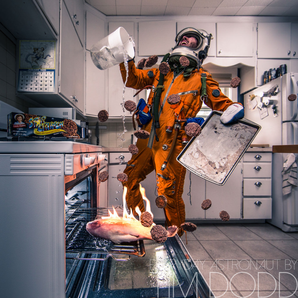 What's an everyday astronaut to do when it's not his turn to take a mission to space? Well, the same things as the rest of us -- brush teeth, do a little cooking -- but wearing a (pretend) spacesuit, just in case.