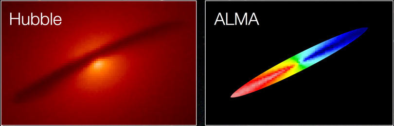 They also give astronomers the distance of the galaxy. The water orbits the black hole as part of the accretion disk, so one side of the disk is orbiting towards us, while the other side orbits away from us. So not only is there an overall redshift of the galaxy, there is a relative blueshift and redshift on either side of the black hole. Measuring the width between either side gives us the apparent size of the accretion disk, and the orbital speed gives us the actual size. Comparing the two gives us the distance of the black hole, and thus the galaxy.