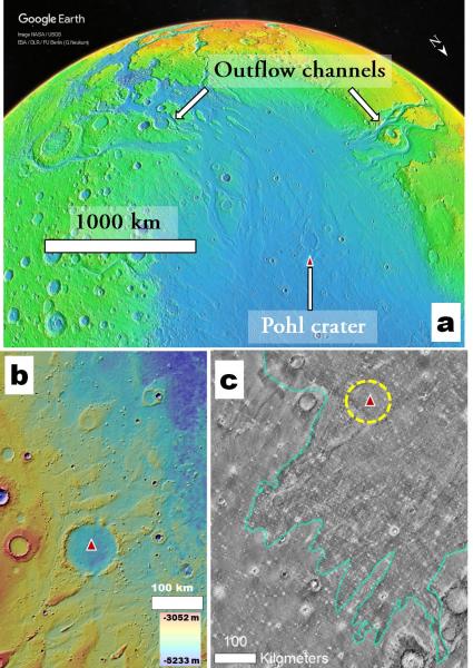 "Pohl is outstanding in several respects; it is atop immense fluvial landscapes formed by ocean-generating floods, and it is partly covered by the second megatsunami. Hence, we know that it must have formed after the ocean's generation and before its disappearance," said Anthony Lopez, a geosciences undergraduate student at Pima Community College and an intern working with Rodriguez.