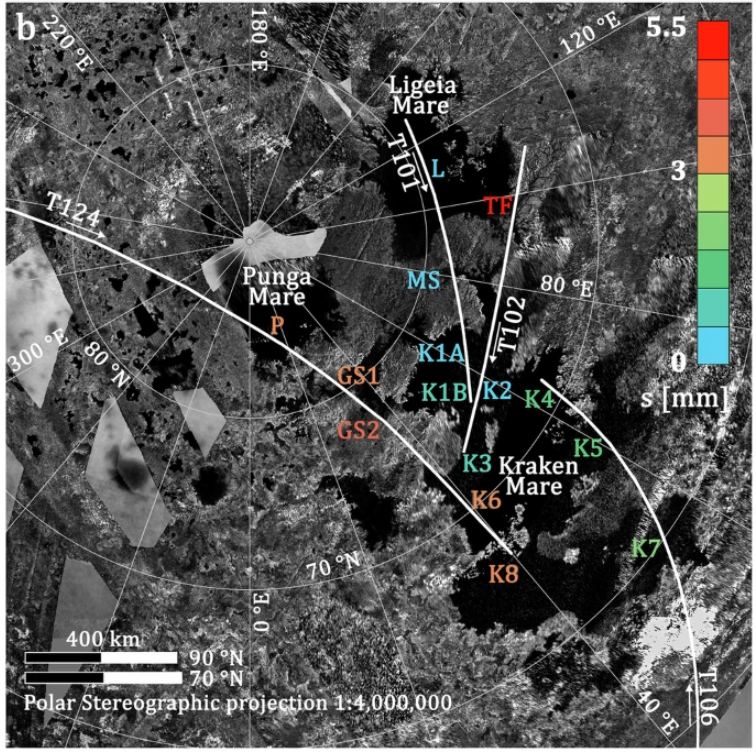 These results are based on bistatic radar data from four Cassini flybys from 2014 to 2016. In this work, the researchers focused on three large seas on the surface of Titan's polar regions: Kraken Mare, Ligeia Mare and Punga Mare.