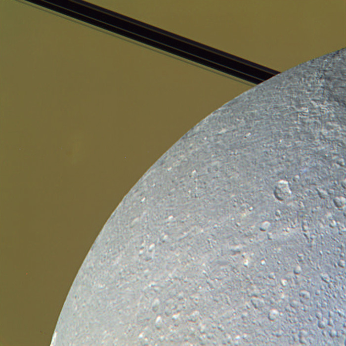 [caption id="attachment_94995" align="aligncenter" width="580" caption="Dione's extensively-cratered limb"]