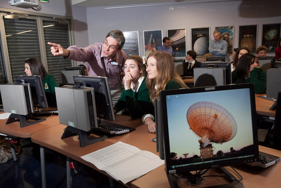 [caption id="attachment_46630" align="aligncenter" width="580" caption="Students in Sydney controlling the Parkes radio telescope. Credit: R. Hollow, CSIRO"]