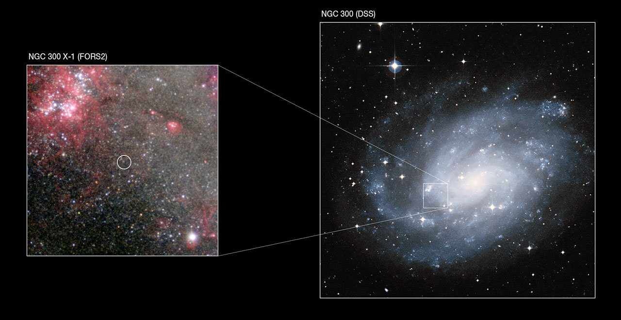 [/caption] In 2007, an X-ray source in NGC 300 was discovered with the XMM-Newton X-ray observatory and the Swift Observatory. "We recorded periodic, extremely intense X-ray emission, a clue that a black hole might be lurking in the area," said team member Stefania Carpano from ESA.