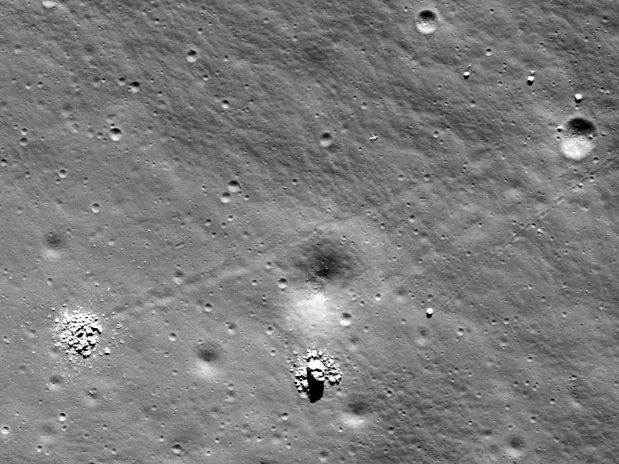 Breaking up may be hard to do, but these two lunar boulders seem to have succeeded extremely well! Imaged by the Lunar Reconnaissance Orbiter Camera (