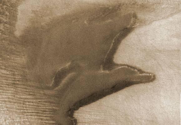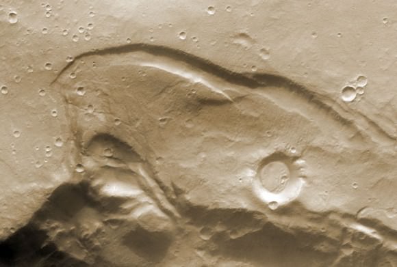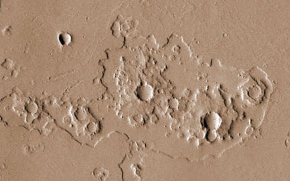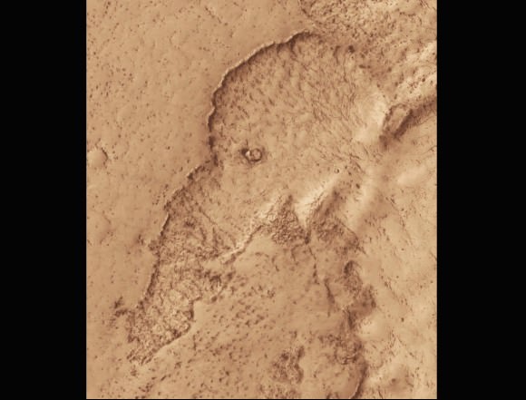 Lava flows in Mars' Elysium Planitia region have left a rather good likeness of a woolly mammoth or elephant. The region is known for some of the planet's youngest lavas - this one may have formed as recently as the past 100 million years.