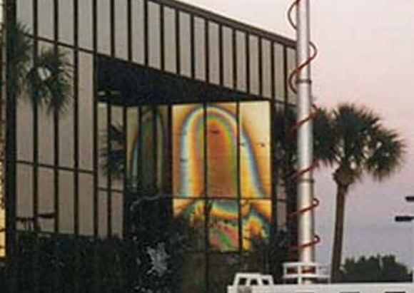 image of the "Virgin Mary" appears in the glass of a Tampa, Florida office building on Christmas Day 1996. Credit: Wikipedia