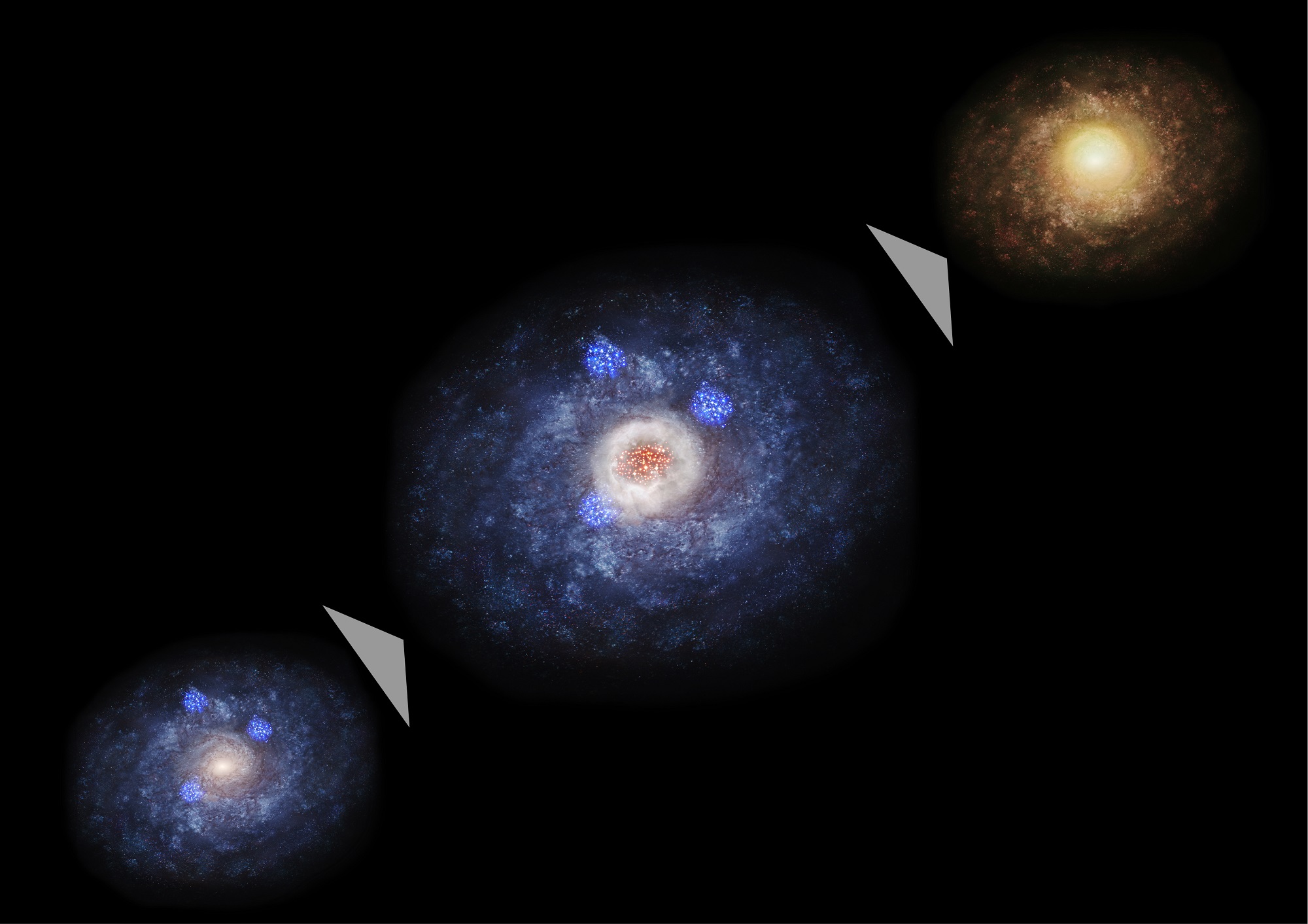 The research team was especially interested in galaxies that have a small, dense, star-forming region known as a "blue nugget". These regions occur early in the evolution of gas-rich galaxies, when big flows of gas into the center of a galaxy cause the formation of young stars that emit blue light. To simulate these and other types of galaxies, the team relied on state-of-the-art