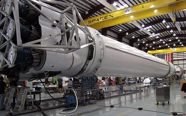 "We expect to launch in one to three months after completing full vehicle integration," said Brian Mosdell, Director of Florida Launch Operations for SpaceX. "Our primary objective is a successful first launch and we are taking whatever time necessary to work through the data to our satisfaction before moving forward." [caption id="attachment_55447" align="alignnone" width="580" caption="Flight hardware for the inaugural launch of Falcon 9 rocket undergoing final integration in the hangar at SpaceX's Cape Canaveral launch site in Florida. Components include: Dragon spacecraft qualification unit (left), second stage with Merlin Vacuum engine (center), first stage with nine Merlin 1C engines (right). Credit: SpaceX"]