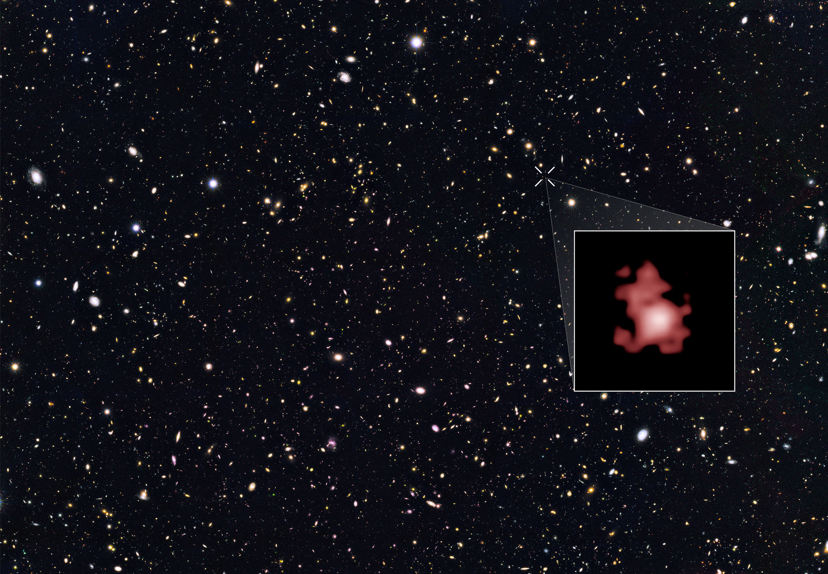 An international team of scientists has used the Hubble Space Telescope to spectroscopically confirm the farthest galaxy to date. Credits: NASA/ESA/B. Robertson (University of California, Santa Cruz)/A. Feild (STScI)