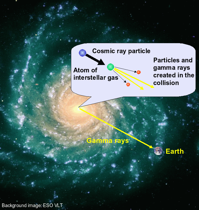 The team looked at how gamma rays can be produced by cosmic rays. Cosmic rays are extremely energetic particles, typically protons moving at nearly light speed. These cosmic ray particles sometimes strike our atmosphere to create a cascade of particles we can detect on the surface. But cosmic ray collisions can also create gamma rays. The team thought the faint gamma-ray background might be caused by cosmic rays striking gas and dust in distant galaxies. Since most of the gas and dust in a galaxy is found in star-forming regions, the team compared the gamma-ray background to the distribution of galaxies actively forming stars. They found that star-forming regions in galaxies could be the source of diffuse gamma rays.