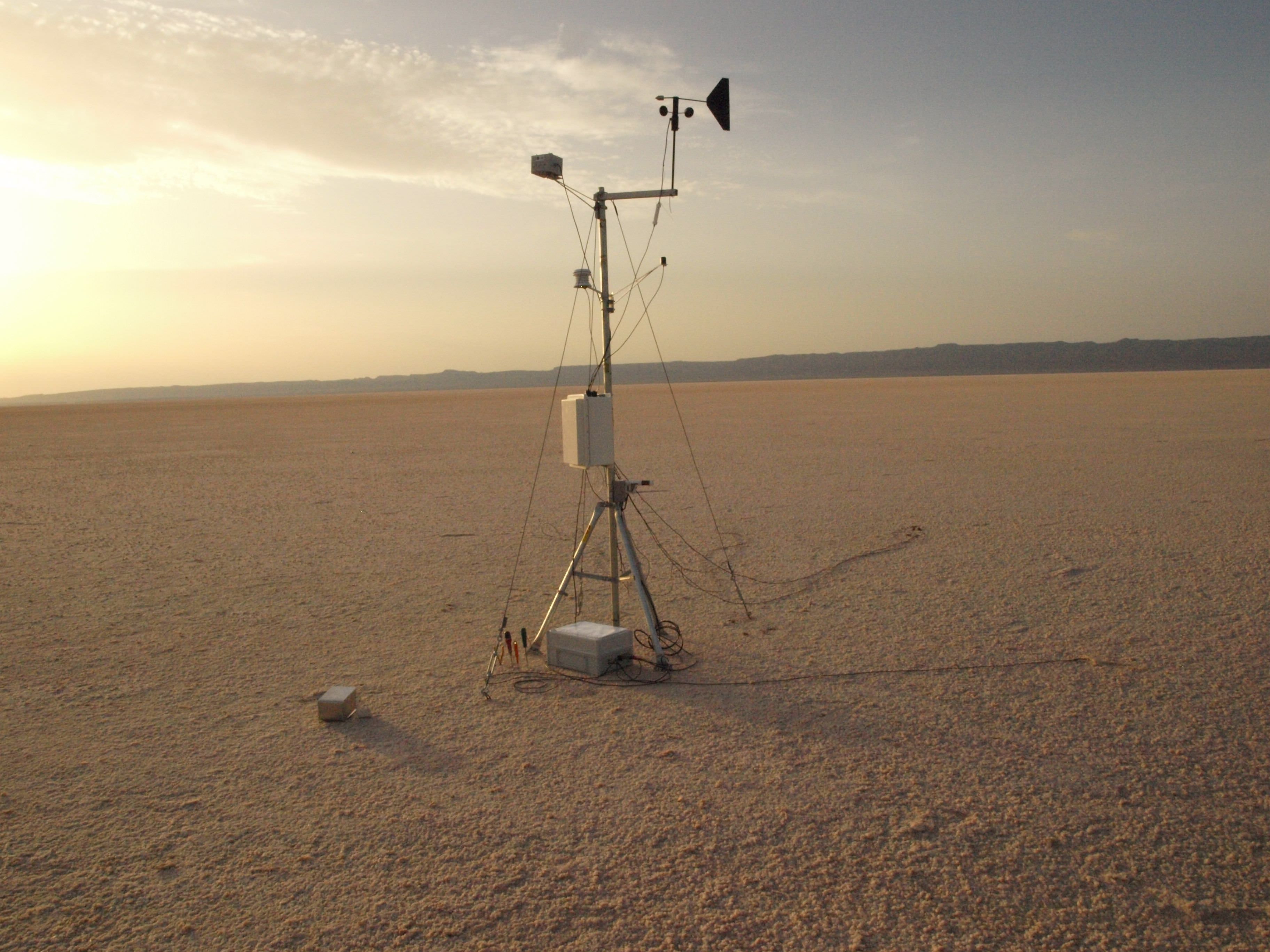 Just one of several weather stations set up at Chott El Jerid, a Tunisian saltpan, measuring temperature, humidity, ultraviolet radiation, wind direction and velocity. Image credit: Felipe Goméz/Europlanet