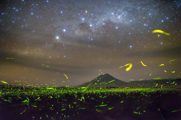 A recent amazing capture (see the intro image) came to us courtesy of Steed Yu. Shooting from the shores of Lake Natron in Tanzania, he managed to capture an amazing composition of fireflies and those 'fireflies of the cosmos,' in the form of a star-dappled southern hemisphere sky.