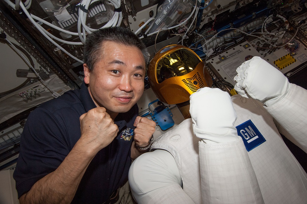 Not only did the robot complete the historic first humanoid to human handshake in space, but Robonaut also sent its greetings to everyone on Earth by using sign language to say, "Hello World."