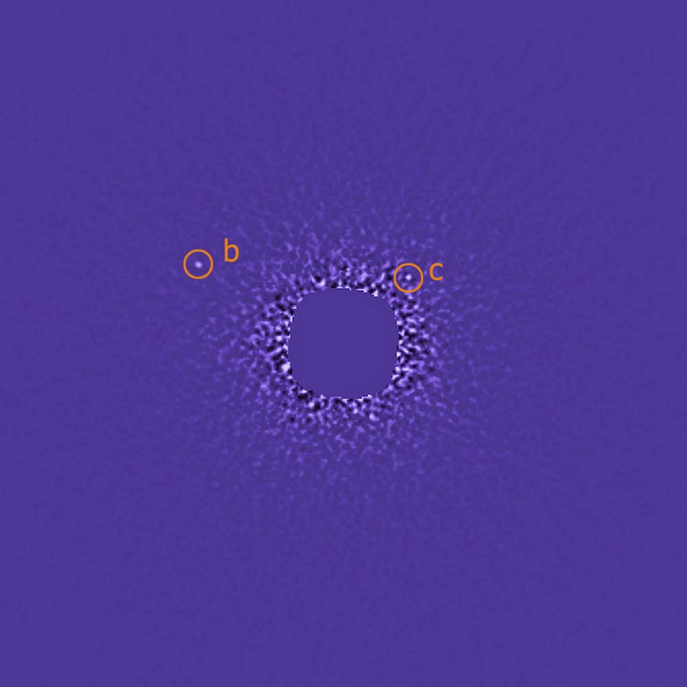 The host star is known as a bright, blue A-type star. These types of stars are usually ignored in ground and space-based direct imaging surveys since they offer a less favorable contrast between a bright star and a faint planet. But they do have an advantage over our sun: Early in their life, they can retain heavy disks of planet-making material and therefore form more massive planets at wider separations that are easier to detect. In the recent study, the star also is young – less than 100 million years old – which means its planets are still glowing with heat from their formation.