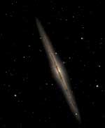 The galaxy imaged, NGC 891, is in the constellation Andromeda at a distance of about 10 million light years. It is of particular scientific interest because it is very similar to our own Milky Way Galaxy but is seen almost exactly edge-on. Dr. Richard Wainscoat and Peter Capak, who are analyzing the image, emphasized the importance of being able to image the entire galaxy in a single exposure with the new camera. "With smaller cameras, galaxies such as NGC 891 had to be imaged in small postage stamp sized pieces that had to be painstakingly pieced together - the new camera produces a better image in a tiny fraction of the time," Wainscoat said. "By allowing us to image very large areas of the sky, this camera will allow us to detect some of the most distant galaxies in the Universe".