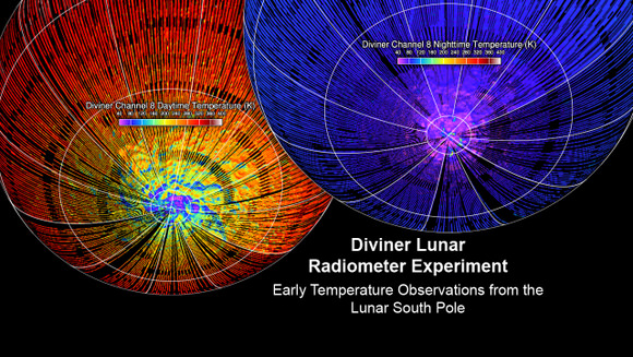 According to the first measurements from the Diviner instrument, which has infrared radiation detectors, LRO found that temperatures at about 35 Kelvin, or -238º Celsius deep in some permanently shaded regions. Vondrak said that these bitterly cold regions at the south pole "are perhaps the coldest part of the solar system." With such cold temperatures, volatiles like water ice could be present, preserved for billions of years. [caption id="attachment_40609" align="aligncenter" width="580" caption="This image shows neutron flux detections around the lunar south pole from LEND. Credit: NASA/Institute for Space Research (Moscow)"]