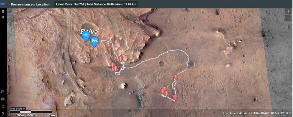 In the video, you'll see an outflow channel snaking away from the crater wall and towards the camera perspective. Then you'll see two inflow channels (Neretva Vallis and Sava Vallis, found on the western-northwestern rim of Jezero. the most prominent of these branches out into the crater to form an ancient fan-shaped river delta that was the landing site for Perseverance.