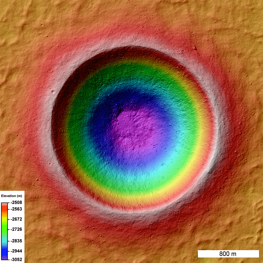 LRO helped discern the actual shape of this crater, and other craters too. It was once thought that the circular Linné crater was bowl-shaped, and that set a precedent for understanding the morphology of craters on the Moon, and also on Earth. But laser-mapping observations by NASA's Lunar Reconnaissance Orbiter determined Linné is actually more of a truncated inverted cone, with a flattened interior floor surrounded by sloping walls that rise up over half a kilometer to its rim.