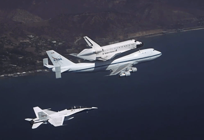 Shared by NASA's Dryden Flight Research Center, the video shows footage taken from the viewpoint of one of the chase planes as Endeavour was ferried aboard a Shuttle Carrier Aircraft from Edwards Air Force Base to Los Angeles International Airport.