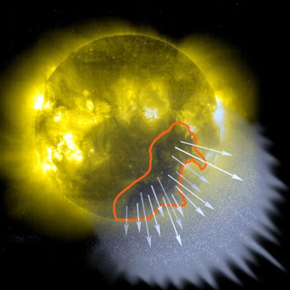 Coronal holes are regions in the sun's atmosphere or corona where solar plasma can stream directly into space. Often a hole will a couple rotations, inciting repeat auroras approximately every 4 weeks. Credit: NASA[/caption]