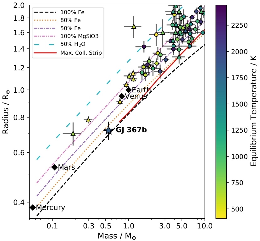 Reference: Lam, Kristine WF, et al. " GJ 367b: A dense, ultrashort-period sub-Earth planet transiting a nearby red dwarf star. " Science 374.6572 (2021): 1271-1275.