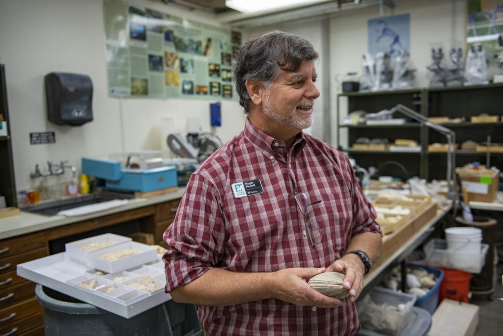 Roger Portell, from the Florida Museum of Natural History, led the students on their field work. He told them to look for the southern quahog, or Mercenaria campechiensis, because they're like storage containers for sediment and smaller life-forms. "Rain can wash a lot of the finds down the section of shells," Portell said. "But if they're trapped inside two big clam valves, you capture all that fine stuff."