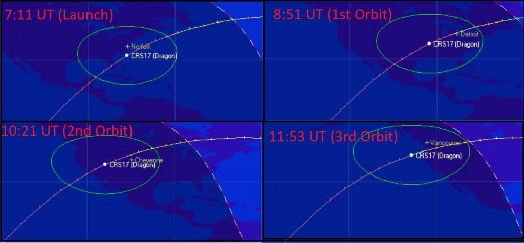 Update: The CRS-17 launch has slipped to Friday, May 3rd, to give NASA time to evaluate electrical issues aboard the International Space Station. Follow us (@Astroguyz) on Twitter for further updates on the visibility prospects of the mission leading up to launch.
