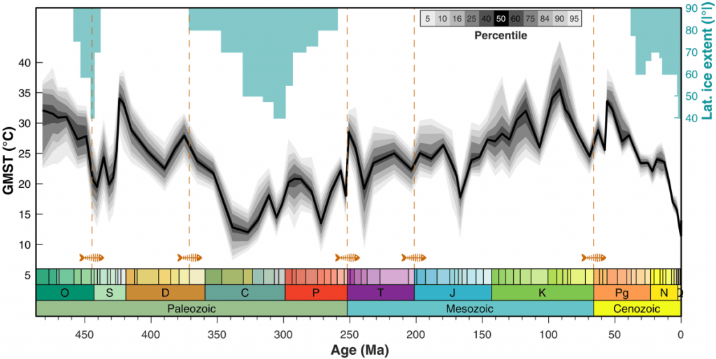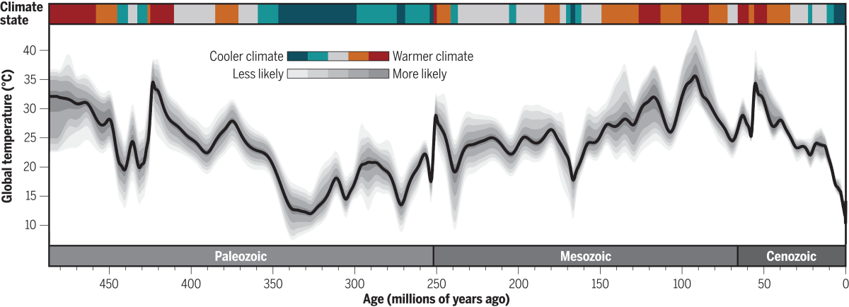 A record of Earth's temperature over the last 485 million years is helping scientists understand how it all played out and illustrating what could happen if we continue to enrich the atmosphere with carbon.