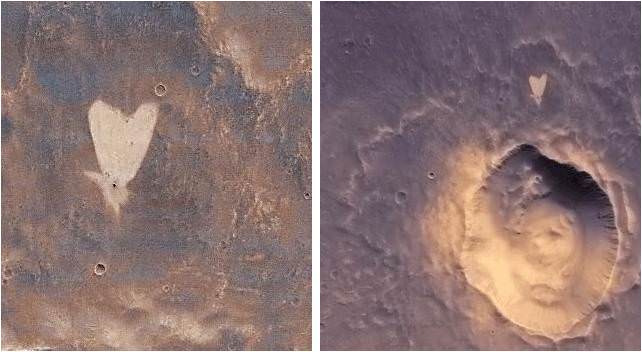 More Martian hearts images below from another Malin built camera aboard NASA's Mars Global Surveyor orbiter