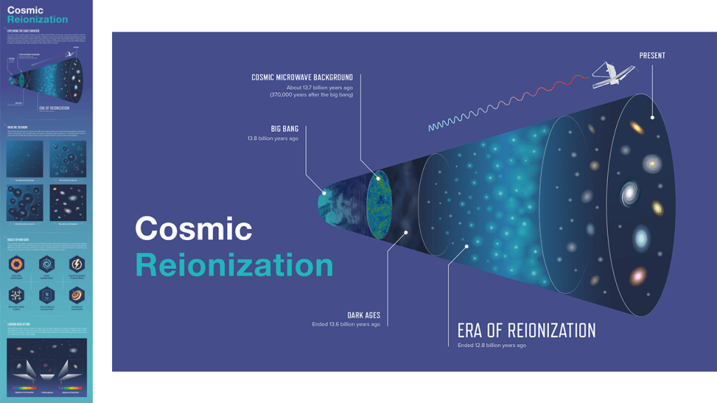 One of the main objectives of the James Webb Space Telescope* (JWST) is to study the early Universe by using its powerful infrared optics to spot the first galaxies while they were still forming. Using Webb* data, a team led by the Cosmic Dawn Center in Denmark pinpointed three galaxies that appear to have been actively forming just 400 to 600 million years after the Big Bang. This places them within the Era of Reionization, when the Universe was permeated by opaque clouds of neutral hydrogen that were slowly heated and ionized by the first stars and galaxies.
