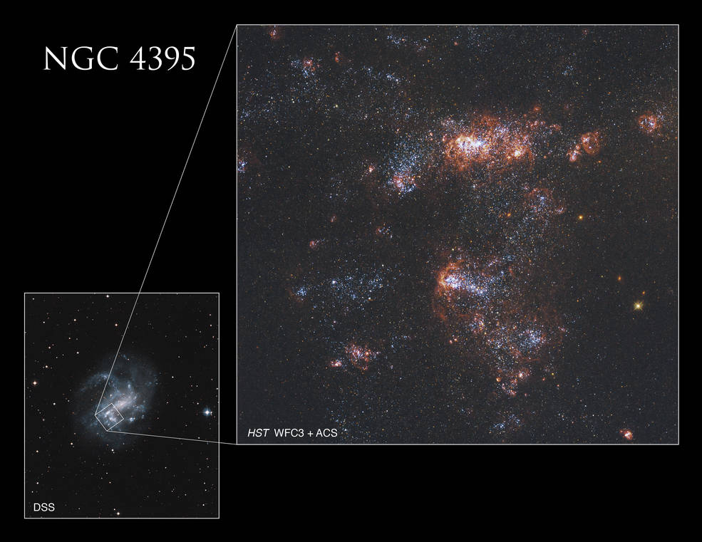 Here's another Hubble image of NCG 4395 that zooms into one of the galaxy's diffuse spiral arms: