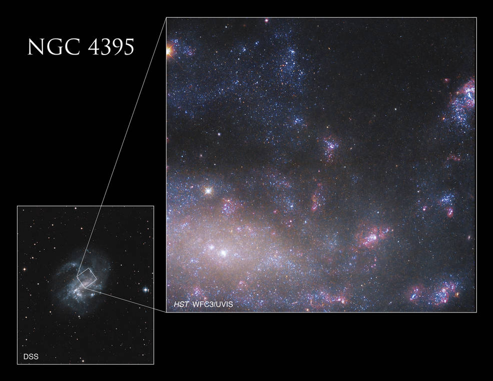 Astronomers recently shared a new image captured by the Hubble Space Telescope of the galaxy NGC 4395. This relatively diffuse and dim dwarf galaxy is located just 14 million light-years from Earth.